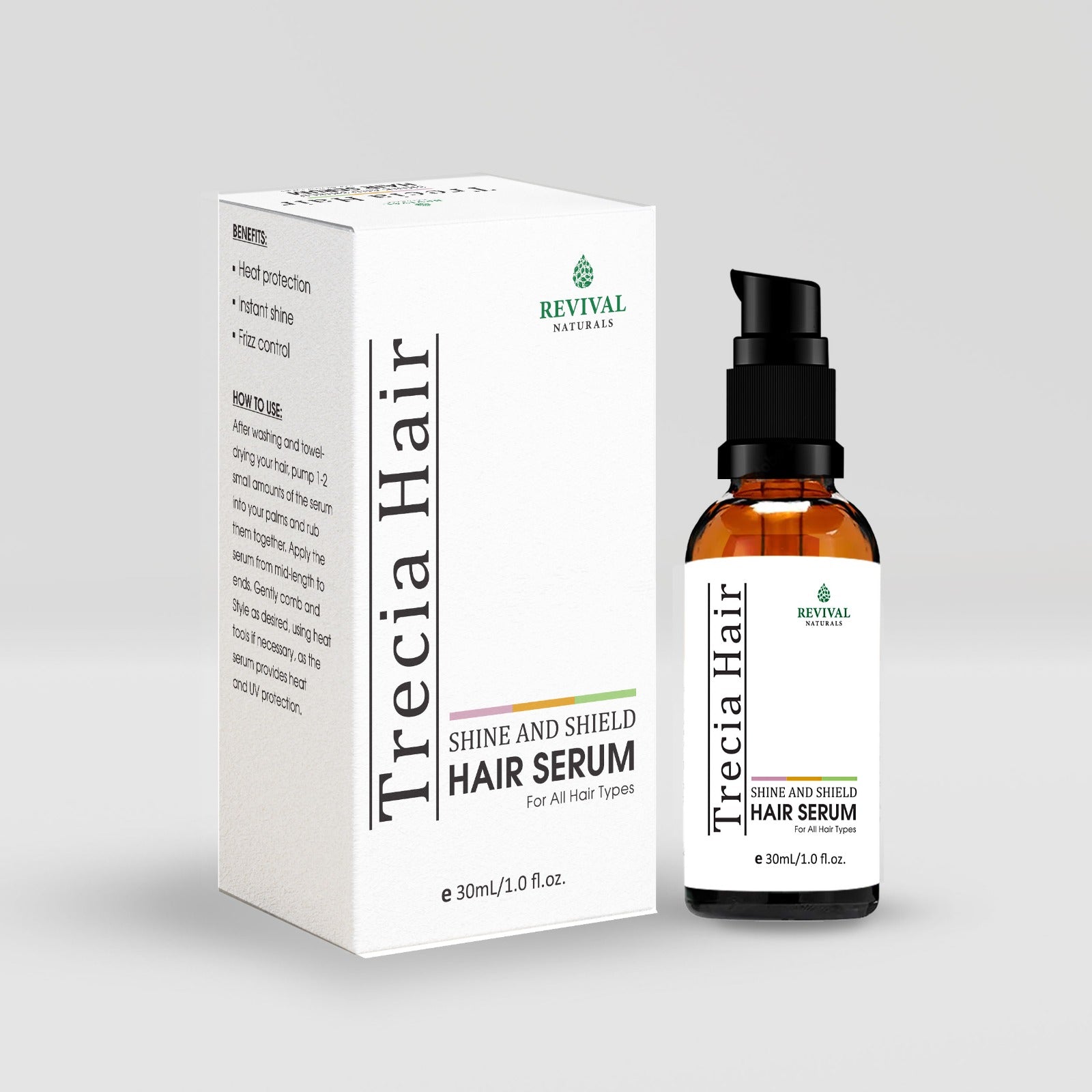 After washing and towel-drying your hair, pump 1-2 small amounts of the serum into your palms and rub them together. Apply the serum from mid-length to ends. Gently comb and Style as desired, using heat tools if necessary, as the serum provides heat and UV protection.